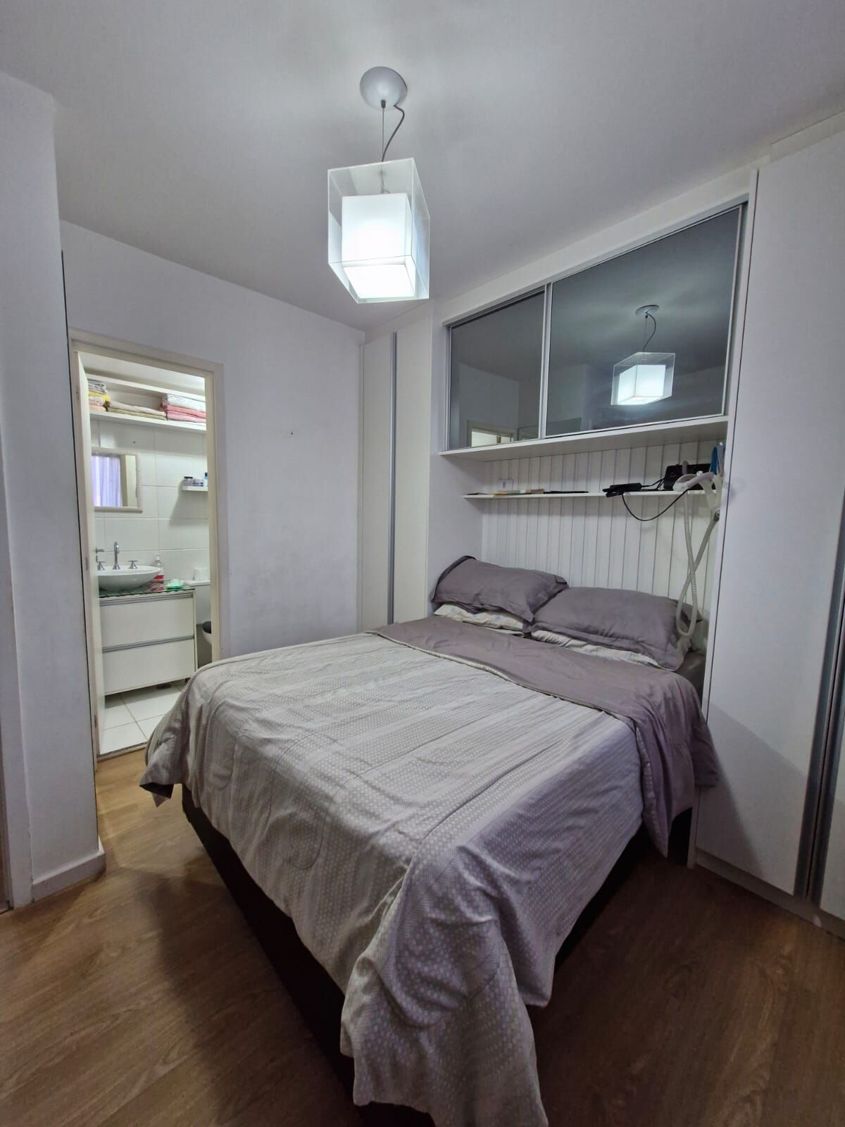 São 03 quartos, sendo uma suíte. Ambos os banheiros possuem armários e aquecimento a gás no chuveiro, torneiras e duchas.