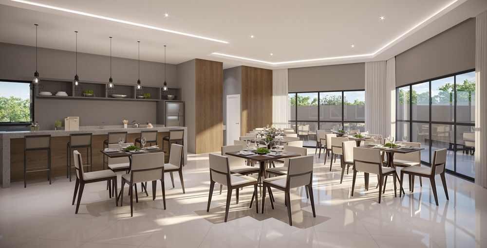 · Salão de festas com espaço gourmet e churrasqueira