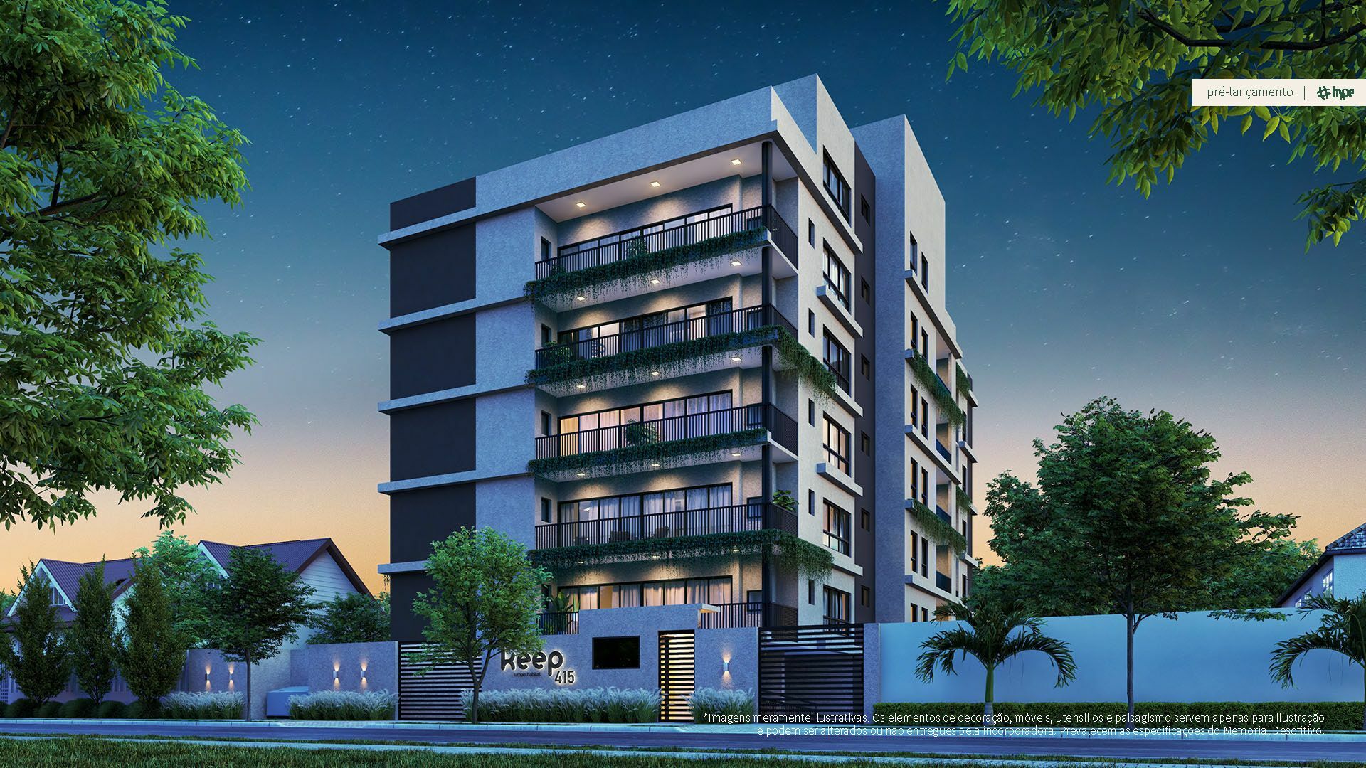A combinação de amplas sacadas com vegetação, grandes esquadrias, cores sóbrias e formas minimalistas fazem com que o projeto apresente uma identidade visual única e contemporânea.