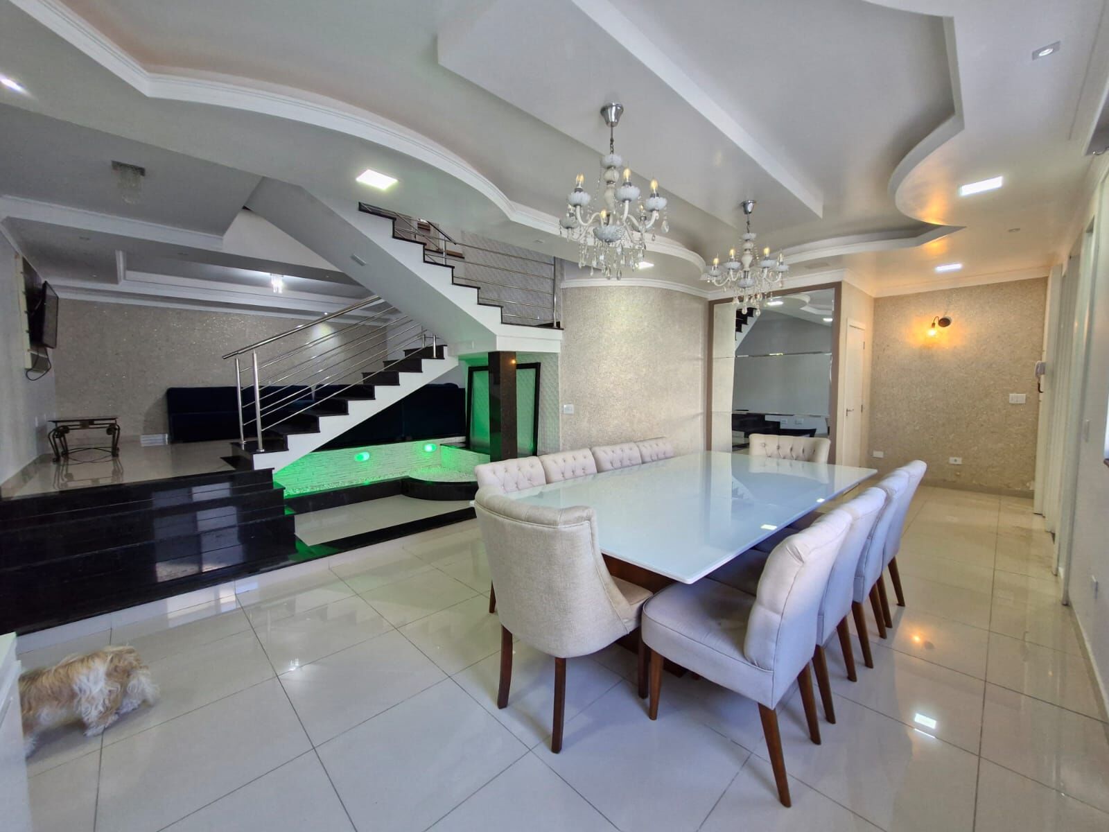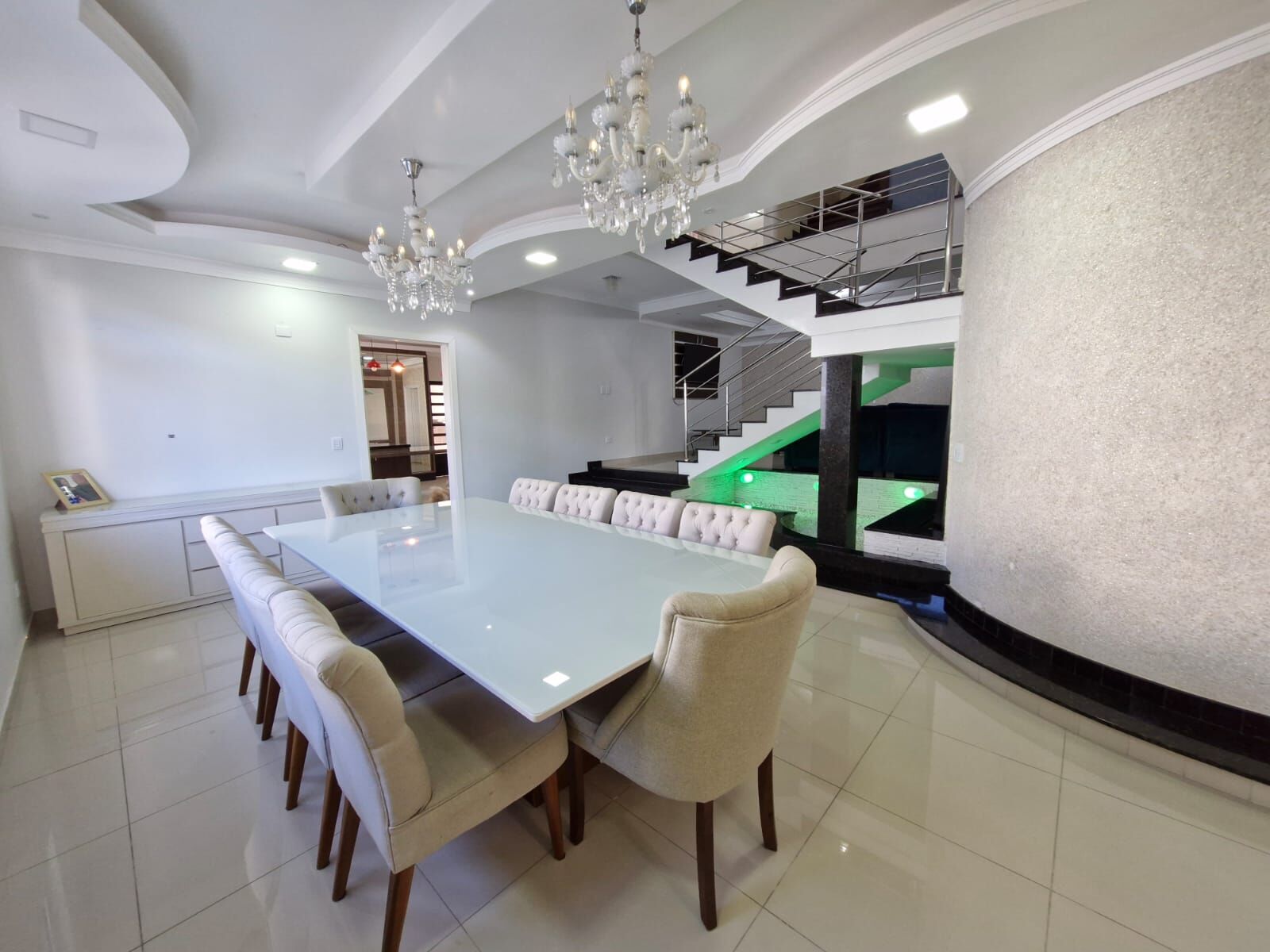 Contém ampla sala de estar e jantar num living trazendo amplitude ao ambiente ao som de uma bela cascata d’água. Projeto de iluminação. Cozinha com armários sob medida.