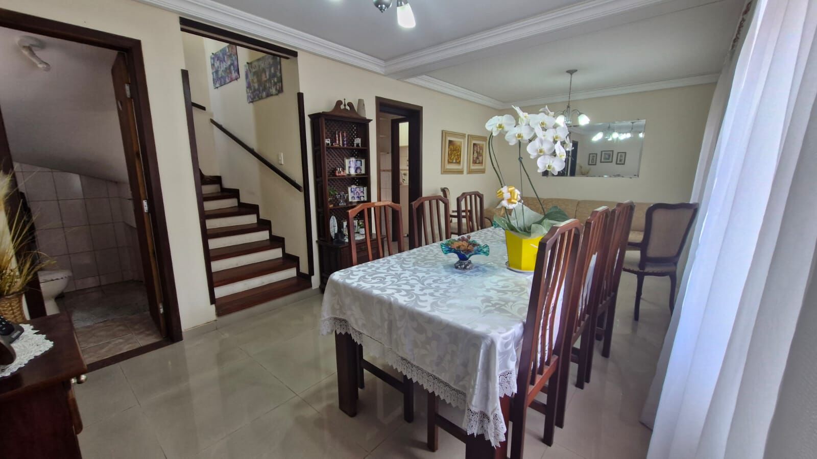 O sobrado possui piso laminado nos quartos, porcelanato na sala e cerâmica na cozinha, lavanderia, banheiros e despensa.