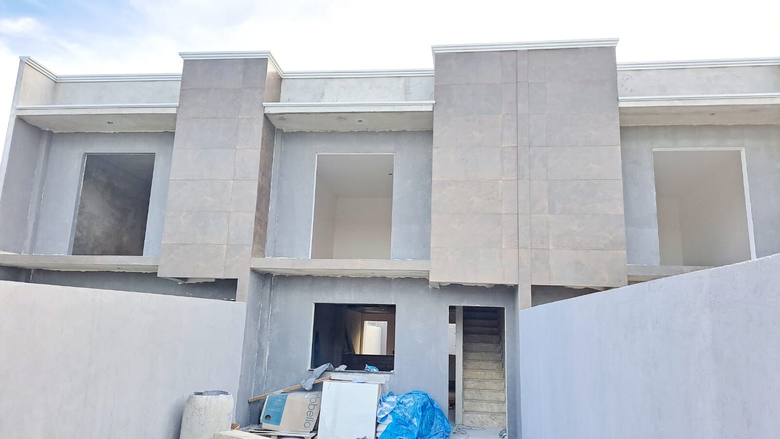 São 100 m² de área útil construída, dividida em dois pavimentos: no térreo você encontra uma sala ampla para dois ambientes, cozinha, um quarto, lavabo, lavanderia e espaço de terreno nos fundos; no primeiro piso, três quartos, sendo uma suíte com sacada e banheiro social. Além disso, o imóvel possui duas vagas de garagem. É possível usar o seu FGTS como parte do pagamento e financiar o imóvel em qualquer banco.